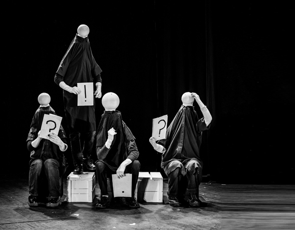 Pas de Panique is a non-verbal, masked performance piece. A play about existentialism and the human condition. It explores fear and ecstasy in their extreme physical manifestations.